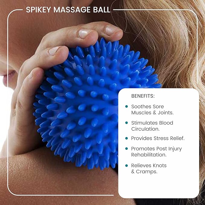 Massage Ball: Designed to release tight and tense muscles, the stress relief ball is ideal to boost flexibility in joints, reduce cramp, improve blood circulation, and relieve tension. It can help to release toxins.